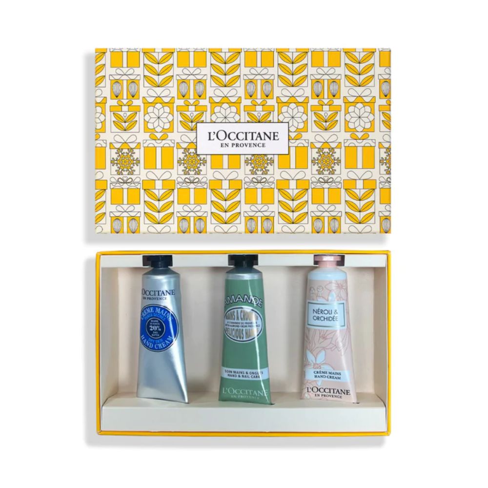 Treat your hands to a festive feast with L'Occitane Festive Hand Cream Collection enchanting trio of best-selling hand creams. Whether at home or on the go, these nourishing and protective creams will leave your hands feeling soft, smooth, and pampered. This Christmas gift set includes:
