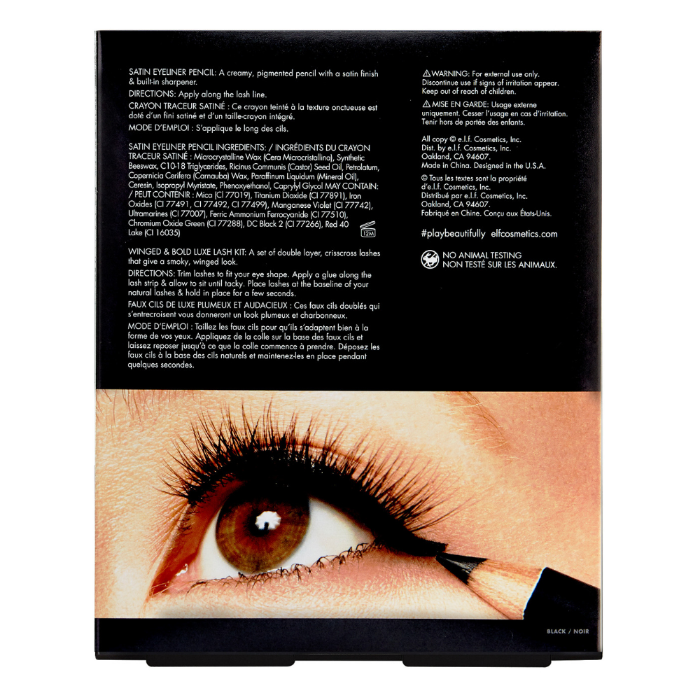 A double layer of crisscross lashes that give a smoky, winged look pair perfectly with the Satin Eyeliner Pencil for a bold eye look.