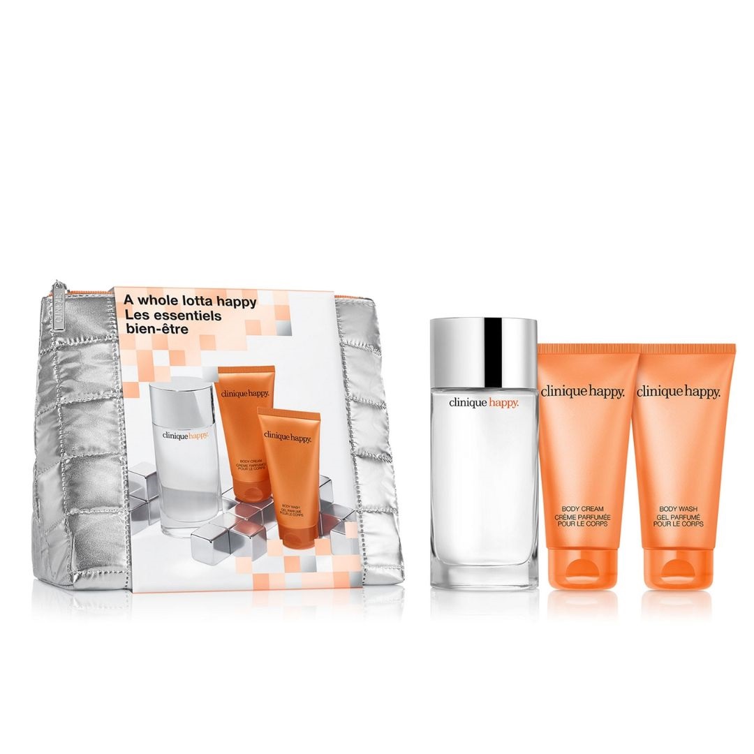 Clinique Happy Perfume Gift SetThis 4-piece fragrance and body care gift set features a trio of Clinique's Happy fragranced products.