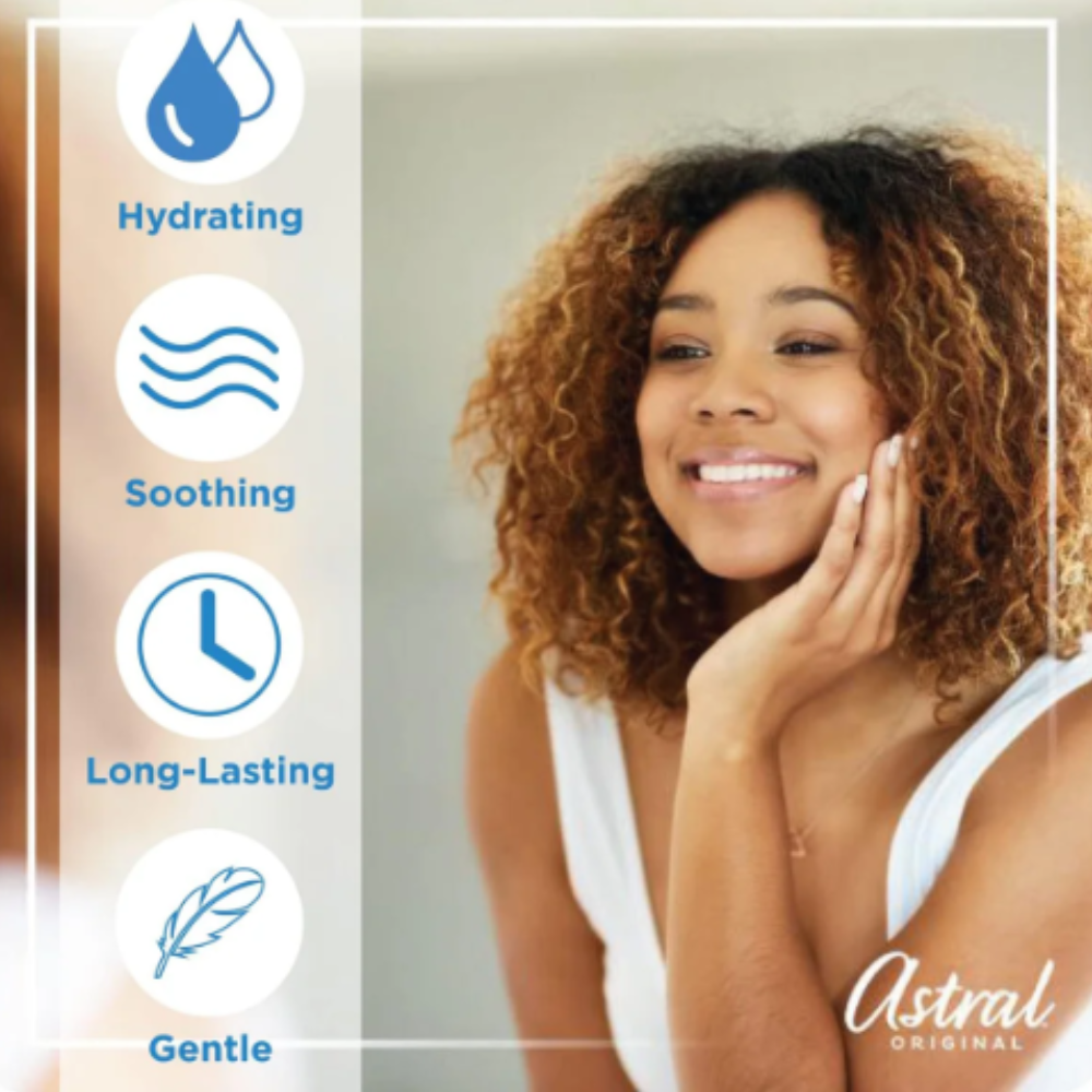 Astral moisturiser has been trusted for generations, with a timeless formula that cares for your skin without compromise. This classic face and body cream is enriched with carefully balanced, nourishing ingredients that lock in your skin's natural moisture while still letting it breathe, leaving it fresh, hydrated and protected.