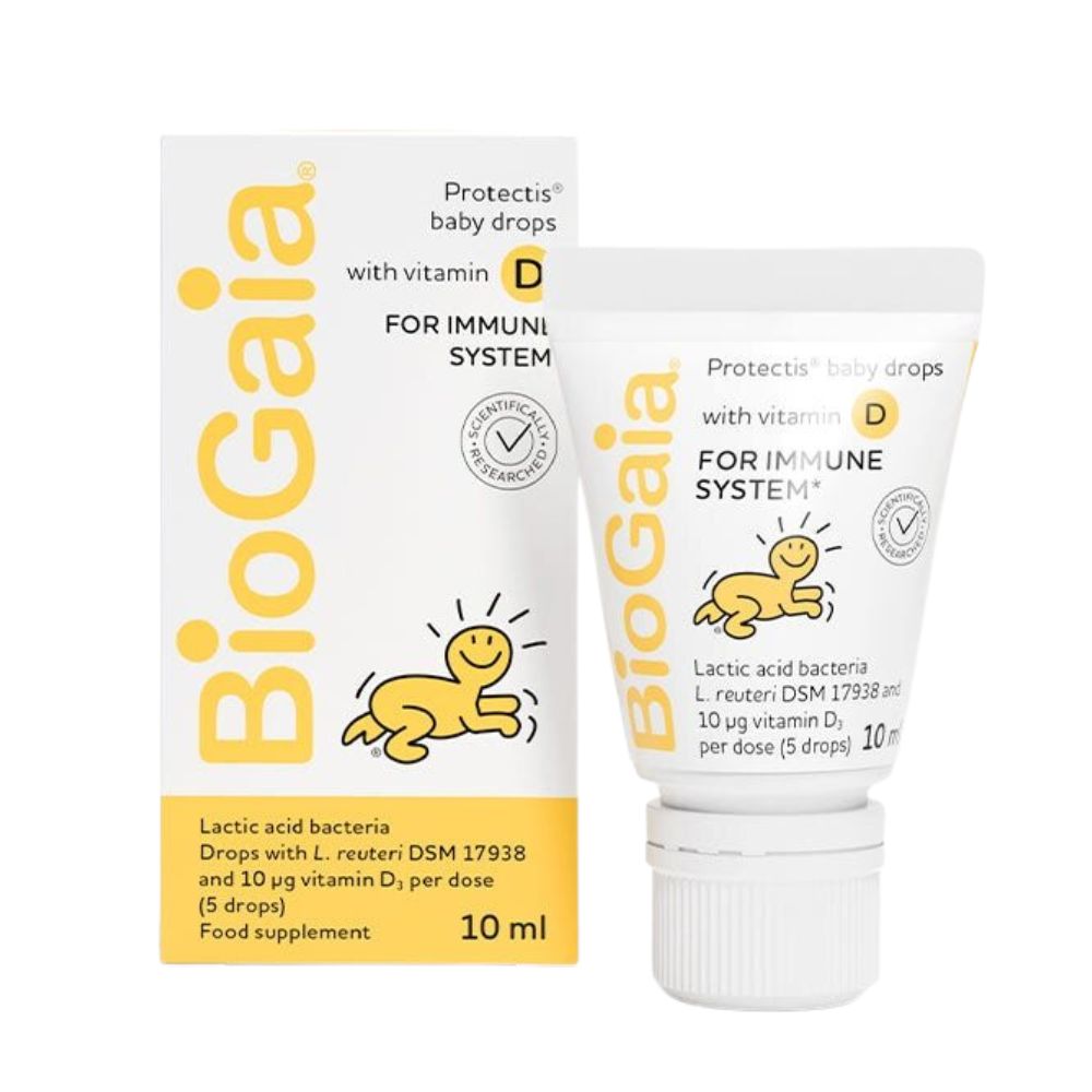 BioGaia Protectis Drops with Vitamin D 10mlBioGaia® Protectis® Baby Drops with Vitamin D is a high-quality food supplement formulated newborns, babies and infants. With 10µg of Vitamin D which contributes to the normal function of the immune system in children. Gentle, scientifically supported baby probiotics suitable from birth to 3 years old. Patented desiccant and production method ensures 100 million live L. reuteri probiotics per daily dose, no refrigeration required. Easy-to-use squeezable tube, just 5 drops once daily