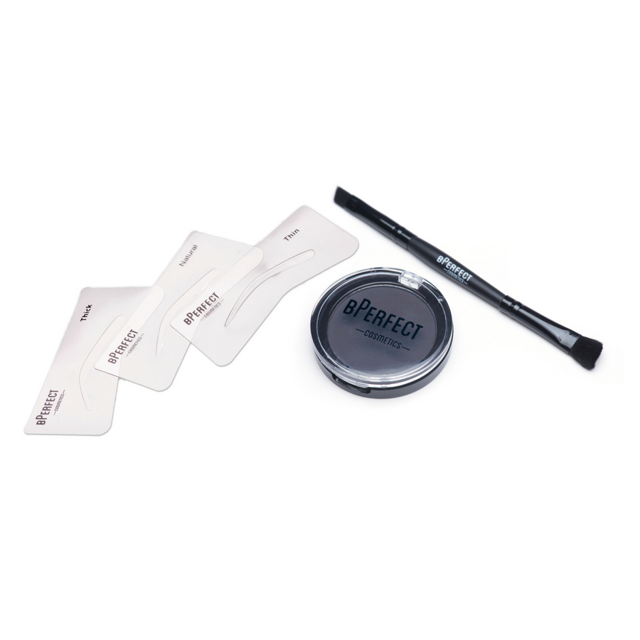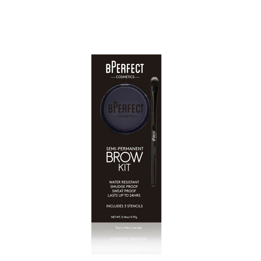 The kit comes with a powder, 3 different shape/size stencils, and double ended brush for a flawless finish. The powder is water resistant, smudge proof, sweat proof, and lasts up to 24 hours or until you remove it with makeup remover.