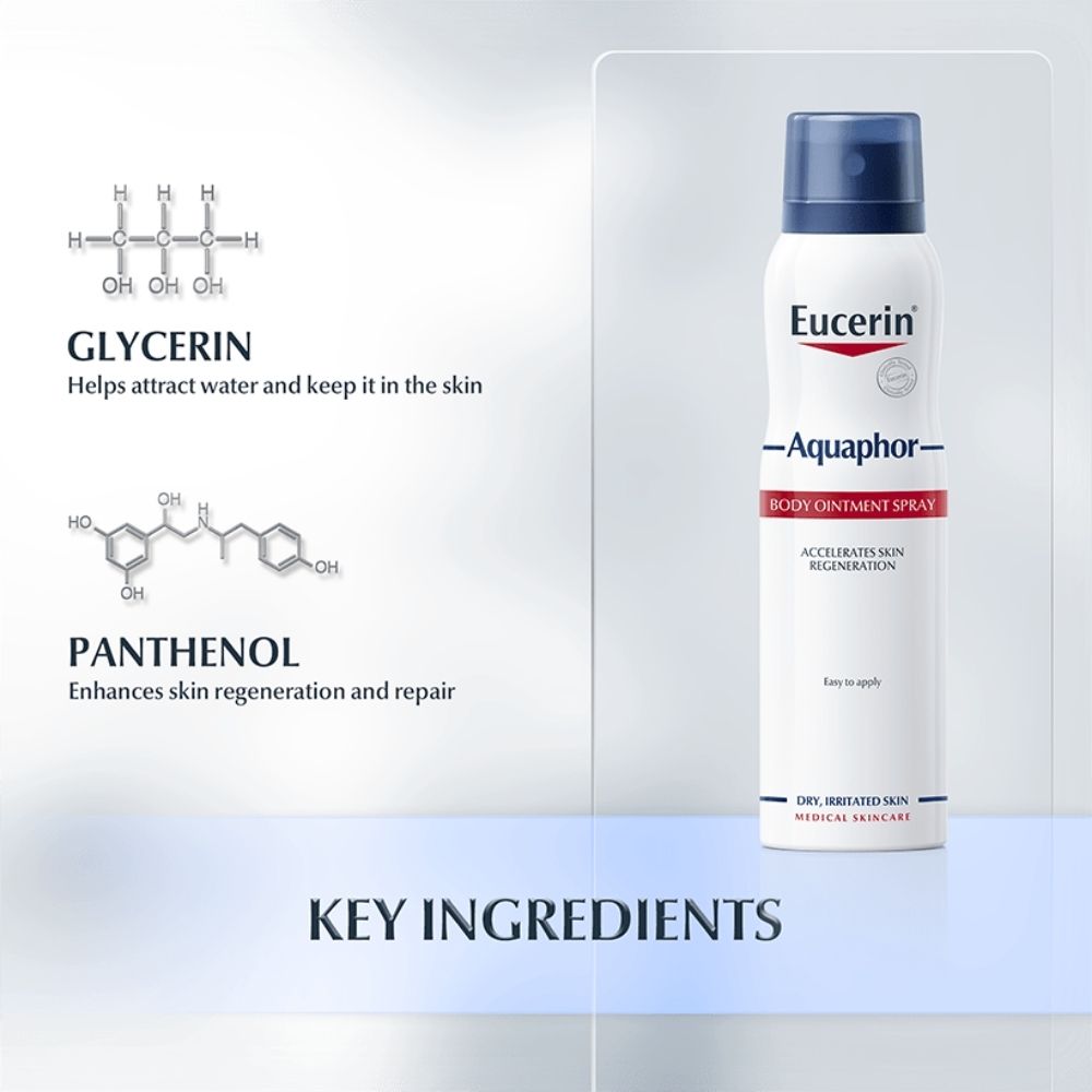 Eucerin Aquaphor Body Ointment Spray 250mlEucerin Aquaphor Body Ointment Spray intensively moisturises and repairs very dry, irritated body skin.